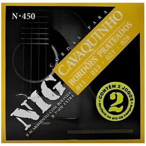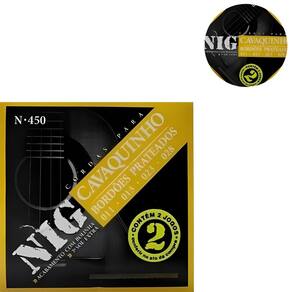 Kit 10 Jogos Encordoamento Cavaquinho Cavaco Nig N450 “011 + BrindeAs cordas NIG são feitas com material importado específico para a fabricação de encordoamentos musicais.A principal característica é a alma hexagonal das cordas, que dá a elas uma incrível flexibilidade, aliviando as tensões internas, facilitando o processo de acomodação das cordas no instrumento, melhorando a pegada e o som.D(Ré) - .011" (0,28mm)B(SI) - .013" (0,33mm)G(SOL) - .023" (0,58mm)D(Ré) - .028" (0,71mm)Itens Inclusos:5 Embalagens Econômicas contendo 10 jogos de cordas completos 10 Cordas - Sol Extra10 Palhetas*Imagens Ilustrativas*