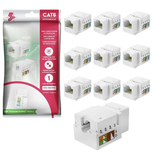 KIT 10 PEÇAS O Keystone Fêmea RJ45 Cat6 - Branco 5+ é um componente essencial para a instalação de uma rede de alta velocidade e confiabilidade. Este keystone fêmea permite a conexão de cabos de rede Cat6 diretamente no seu painel de conexões, proporcionando uma conexão segura e de alta qualidade. Com a tecnologia Cat6, esse keystone é capaz de suportar velocidades de até 10 Gbps e frequências de até 250 MHz, tornando-o ideal para aplicações que exigem uma largura de banda maior, como streaming de vídeo em alta definição, jogos online e transferência de dados pesados. A instalação do Keystone Fêmea RJ45 Cat6 é simples e fácil. Basta encaixar o keystone no seu painel de conexões ou em uma caixa de superfície compatível e conectar os cabos de rede Cat6 nas entradas RJ45. O design compacto e de encaixe perfeito garante uma conexão segura e estável, minimizando a interferência e a perda de sinal. O Keystone Fêmea RJ45 Cat6 - Branco 5+ é fabricado com materiais de alta qualidade, garantindo durabilidade e confiabilidade a longo prazo. Além disso, o acabamento branco proporciona uma aparência estética e ao seu painel de conexões. Com o Keystone Fêmea RJ45 Cat6 - Branco 5+, você terá uma solução eficiente e confiável para conectar seus cabos de rede Cat6. Desfrute de uma conexão de alta velocidade e baixa latência em sua rede, garantindo uma transmissão de dados rápida e estável. Adquira agora o Keystone Fêmea RJ45 Cat6 - Branco 5+ e aprimore a sua infraestrutura de rede com qualidade e desempenho superiores. Prepare-se para uma experiência de rede excepcional Marca: Não Informado