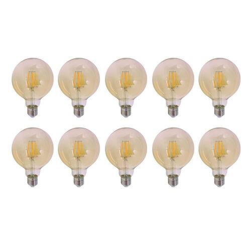 KIT 10 Lâmpada Filamento LED Vintage Redonda G95 4W Gold KIT 10 Lâmpada Filamento LED Redonda G95 4W 2.400k As lâmpadas filamento LED apresentam um brilho mais suave e um formato especial, a lâmpada serve para deixar o ambiente com mais personalidade e requinte, realçando a iluminação e decorando com o seu design e beleza. A recomendação é utilizá-la com pendentes abertos para que toda sua beleza fique à mostra. ESPECIFICAÇÕES TÉCNICAS: Potência: 4W Voltagem: 110v 220v BIVOLT Dimerização: Não Dimerizável Vida Útil: 15.000 horas IRC: 80 Temperatura de Cor: 2.400K Amarelo Fluxo Luminoso: 400 lúmens lm Ângulo de Abertura: 300º Fator de Potência: 0,5 Soquete: E-27 Padrão Lente Vidro : Âmbar Dimensões da Lâmpada: Altura: 17,3 cm Largura: 12,5 cm Economia de energia de 85% em relação à lâmpada incandescente. - Ecologicamente correta - Não contém mercúrio e Cinza. - Não emite UV/IV e gera menos calor. CUIDADOS E RESTRIÇÕES: - Evite usar em áreas de altas temperaturas Maiores que 55 graus Celsius - Não é adequado para interruptores reguláveis ou seja, não é dimerizável. - O uso em luminárias fechadas pode diminuir a vida útil da lâmpada. - Desligue a energia ao remover ou instalar a lâmpada. O produto é novo Sim, todos os produtos são novos. Caso o produto não supra minha necessidade posso devolver ou trocar O produto tem Sim, todos os produtos têm . Se ainda houver alguma dúvida estamos a disposição para responder de segunda-feira a sexta-feira das 08:00 às 17:30. Marca: Não Informado Ean: 7795195104789