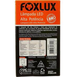 A Lâmpada LED Alta Potência Foxlux é o que você precisa para iluminar ambientes grandes e o melhor, com economia de energia, além do mais oferece qualidade de luz visivelmente mais confortável e tem maior durabilidade, ja que as lâmpadas de LED exigem menor quantidade de potência para produzir o mesmo fluxo luminoso dos modelos tradicionais, isso porque o LED produz a mesma quantidade de luz que uma lâmpada comum utilizando menos de 1/3 do consumo de energia e proporciona longa vida útil ao produto.