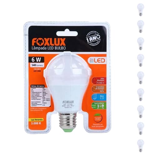 A Lampada LED Bulbo 6W 3000K Bivolt Foxlux oferece iluminacao aconchegante e eficiente, sendo ideal para diversos ambientes residenciais e comerciais. Com tecnologia LED, proporciona economia de energia e longa durabilidade.