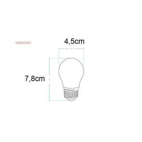 Indice de proteção: IP20 Não Dimerizável; ÂNGULO DE ABERTURA: 300º Indicação: Uso Interno Potênica: 2w Cor da lâmpada: Transparete com filamentos vermelhos Emissão de luz: Vermelha Peso: 16 gramas Dimensão: Largura 45mm x Altura 78mm Material: vidro. Formato do bulbo: g45 Características de funcionamento: Temperatura ambiente: -5c a 40c. Tensão de entrada: 100v a 240v. Bivolt Fator de potência: 0,4. Baixo consumo de energia. Lâmpadas isentas de certificação inmetro por emitir luz colorida, conforme portaria inmetro nº 389/2014