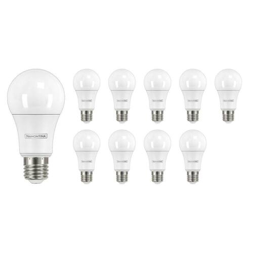 Para deixar os ambientes internos iluminados com menos gasto de energia, a Lâmpada LED Tramontina Bulbo Base E27 810 lm 9 W Bivolt 6500 K Luz Branca da Linha Iluminação LED é a escolha certa. Ela consome menos energia e é mais eficiente, proporcionando uma vida útil maior que as lâmpadas convencionais. Possui acendimento instantâneo, que favorece a melhor iluminação ao ser ligada. A lâmpada bulbo bivolt substitui as convencionais lâmpadas incandescentes e eletrônicas LFC . Com luz branca, possui 810 lúmens, 9 watts e 6500 kelvins. Ela vai deixar sua sala de estar, escritório e outros ambientes internos mais iluminados e elegantes. Contém: 10 Lâmpadas LED Importante: EAN13: 7891435945669 DUN14: 17891435945666 NCM: 8539.50.00 Peso Líquido: 0,0560 kg. Peso Bruto: 0,0600 kg. Metragem: 0,000428 m³. Dimensões Embalagem Compr. X Larg. X Alt. : 62x 60x 115 mm. Dimensões Produto Compr. X Larg. X Alt. : 60x 60x 113 mm. Cor 1: FFFFFFF Hexa Marca: Não Informado Ean: 7898673656128
