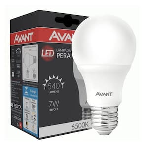 Lâmpada Led Pera 7W Bivolt E27 6500K Luz Branca Avant Formato de venda: Kit 10 Unidades Fluxo luminoso: 630 lm Temperatura de cor: 6500 K Cor da luz: Branca Possui soquete E27