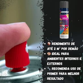 Tinta Spray 400ml Preto Brilhante Uso Geral em Aço Ferro Couro Gesso Cerâmica A Tinta Spray 400ml Preto Brilhante Uso Geral é a solução prática para renovar superfícies de metal, gesso, couro e cerâmica. Ideal para dar vida nova a bicicletas, móveis, eletrodomésticos e objetos em geral, garantindo um acabamento moderno e duradouro. Com fórmula de alta qualidade, oferece excelente aderência e acabamento Brilhante, além de resistência superior contra desgastes do dia a dia. Sua cobertura uniforme realça os detalhes e proporciona um resultado em poucas camadas. Prática e fácil de aplicar, a tinta spray seca ao toque em apenas 15 minutos, permitindo agilidade nos trabalhos e economia de tempo. O rendimento de até 2 m por demão garante maior aproveitamento do produto e ótimo custo-benefício. Diferenciais: Acabamento Brilhante com ótima aderência Alta durabilidade e resistência em ambientes internos e externos Secagem rápida e aplicação prática com cobertura uniforme Especificações TÉCNICAS: Volume: 400ml Rendimento: até 2 m por demão Superfícies indicadas: metal, gesso, couro e cerâmica Secagem: toque em 15 minutos Acabamento: Brilhante Recomendação: uso de primer para melhor desempenho Itens INCLUSOS: 10 Tintas Spray 400ml Preto Brilhante Uso Geral Marca: Não Informado