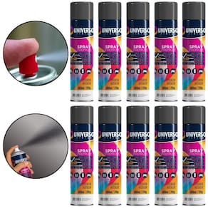 Tinta Spray 400ml Preto Fosco Uso Geral em Aço Ferro Couro Gesso Cerâmica A Tinta Spray 400ml Preto Fosco Uso Geral é a solução prática para renovar superfícies de metal, gesso, couro e cerâmica. Ideal para dar vida nova a bicicletas, móveis, eletrodomésticos e objetos em geral, garantindo um acabamento moderno e duradouro. Com fórmula de alta qualidade, oferece excelente aderência e acabamento Fosco, além de resistência superior contra desgastes do dia a dia. Sua cobertura uniforme realça os detalhes e proporciona um resultado em poucas camadas. Prática e fácil de aplicar, a tinta spray seca ao toque em apenas 15 minutos, permitindo agilidade nos trabalhos e economia de tempo. O rendimento de até 2 m por demão garante maior aproveitamento do produto e ótimo custo-benefício. Diferenciais: Acabamento Fosco com ótima aderência Alta durabilidade e resistência em ambientes internos e externos Secagem rápida e aplicação prática com cobertura uniforme Especificações TÉCNICAS: Volume: 400ml Rendimento: até 2 m por demão Superfícies indicadas: metal, gesso, couro e cerâmica Secagem: toque em 15 minutos Acabamento: Fosco Recomendação: uso de primer para melhor desempenho Itens INCLUSOS: 10 Tintas Spray 400ml Preto Fosco Uso Geral Marca: Não Informado