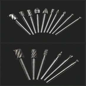 Utilizada para desbastar, modelar, esculpir madeira, resina acrílica, PVC, desgaste de gesso, acabamentos, remoção de rebarba, etc.