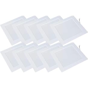 Potência: 18W. Temperatura: 4.000K. Lúmens: 1,040. Voltagem Bivolt: 127-220V. Dimensões mm : 220 x 220 x 11. Contém 10 Unidades Neste Kit.