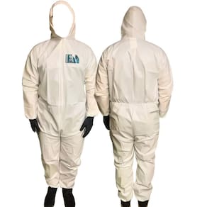 Especificações técnicas - Material: não tecido de fibra de polipropileno microporoso respirável. - Fechamento: zíper frontal para fácil uso e remoção. - Elásticos: no capuz, cintura, punhos e tornozelos para melhor ajuste e vedação. - Cor: Branco. - Norma técnica: ISO 16602:2007.