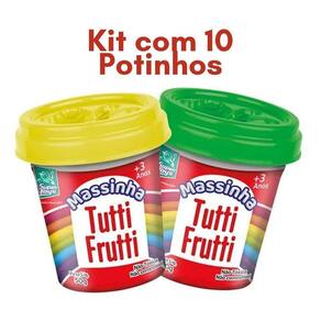 Kit 10 Massas Divertidas Brinquedo Massinha Tutti Frutti Incentive a criatividade e a coordenação motora das crianças com o Kit de Massinhas Tutti Frutti Com 10 potinhos de massinha colorida 50g cada , este brinquedo é ideal para proporcionar horas de diversão, aprendizado e desenvolvimento sensorial. Cada potinho acompanha uma cor vibrante e uma tampa com molde de bichinho, possibilitando que os pequenos soltem a imaginação e criem diversas formas de maneira lúdica e educativa. Acompanha: -10 potinhos de massinha 50g cada com moldes na tampa e com cores Destaques do produto: -massinhas macias e seguras para uso infantil -moldes de bichinhos diferentes nas tampas -estimula a criatividade, coordenação motora e percepção de cores -ideal para atividades educativas e recreativas -fácil de modelar e reutilizável Especificações técnicas: -peso por potinho: 50g total de 500g no kit -material: Massinha atóxica própria para uso infantil -idade recomendada: A partir de 3 anos -armazenar com tampa fechada após o uso para maior durabilidade 1-as massinhas são seguras para crianças R: Sim, são produzidas com material atóxico, adequadas para crianças acima de 3 anos. 2-vem com moldes para brincar R: Sim. Cada tampa possui um molde de bichinho diferente para modelar as massinhas. 3-quantos gramas tem cada potinho R: Cada potinho contém 50g de massinha, totalizando 500g no kit. Homologação Inmetro: APTA-BRI-0036/21-12 Ean: 7898070932238