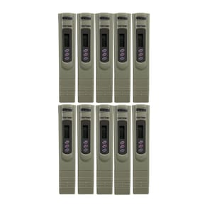 KIT 10 MEDIDOR DE DUREZA D´AGUA PARA A MEDIÇÃO DE TDS, TEMPERATURA E CONDUTIVIDADE ELÉTRICA (EC) TIPO CANETA MOD. TDS-110 DESCRIÇÃO: Medidor 3 em 1 tipo caneta, realiza facilmente medições de dureza da água (TDS) em PPM, condutividade elétrica em ?S e temperatura ambiente, em °C e °F DESTAQUES: Leve, portátil, construído em plástico Abs. O medidor 3 em 1 ajuda no controle da água de espécies aquáticas APLICAÇÕES: Hidropônia, aquicultura, cultivo urbano, produção e o consumo de água pura, piscinas, água de poço, laboratório e processamento de alimentos. ESPECIFICAÇÕES TÉCNICAS: Faixa de medição 0 a 10.000 ppm Resolução: 1ppm até 999 ppm / 10 ppm > 1000 ppm Precisão: ± 2% do fundo de escala Faixa de medição de condutividade elétrica 0 a 9990 ?S Resolução: 1 ?S Precisão: ± 2% do fundo de escala Faixa de medição de temperatura 0 °C a 50 °C Resolução: 0,1 °C Precisão ± 2 °C Função Hold congela a medição no display do instrumento. Ponto de calibração ajustável Temperatura de operação: 0 °C a 50 °C Umidade de operação: <85% UR Alimentação: 2 baterias mod. LR44 de 1.5V Peso: 76g Dimensões: 155 x 31 x 23 mm (LxAxP) ITENS FORNECIDOS: 10 - Medidor digital TDS-110 10 - Estojo para transporte com clipe de cinto 20 - Baterias 1,5V mod. LR44