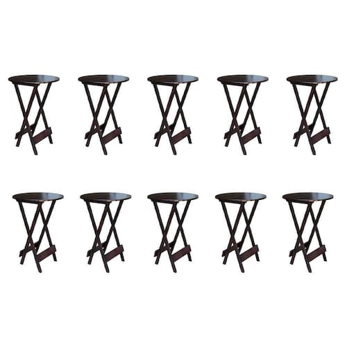 Kit 10 Mesas De Madeira Bistrô Dobravel Ideal Para Bar E Restaurante Imbuia - Cor: Marrom