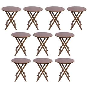 Kit 10 Mesas Redondas Dobráveis em Madeira Maciça 70x70 Imbuia Ideal para Bares e Restaurantes - Marrom
