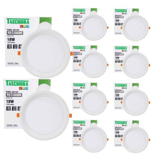 Kit 10 Painel de Led Redondo Embutir Recuado 18W Bivolt Taschibra 6500K Frio