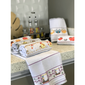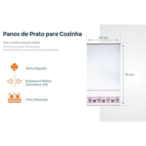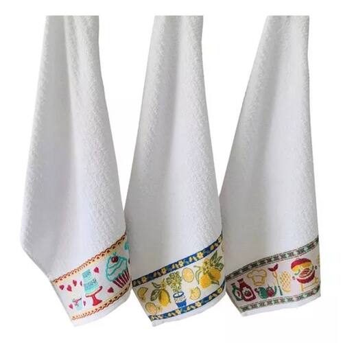 Característica Principal: Panos de Prato atoalhados super absorventes, com a barra lindamente decorada e espaço para bordar.