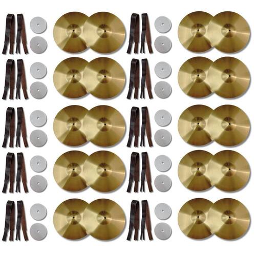 Kit Prato 14 Chimbal Hi Hat Dourado Brilhante C. Ibanez + Pares de Alça Com Feltro Para Prato Fanfarra Marcial Couro