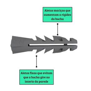 Aletas Fixas: Evitam o giro da bucha dentro do furo, proporcionando mais segurança.