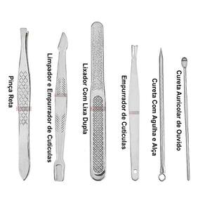 Conteúdo da Embalagem: 01 Cureta Extrator de Cravos e Espinhas com Agulha e Alça 01 Cureta Limpador de Ouvido Mimi Kaki Japonês 01 Espátula Raspador e Empurrador de Cutículas 01 Empurrador de Unha 01 Lixador de Unha Dupla Face em Inox 01 Cortador de Unha Grande (8 cm) 01 Cortador de Unha Lateral (45°) 01 Pinça Reta 01 Alicate de Cutícula 01 Estojo de Armazenamento