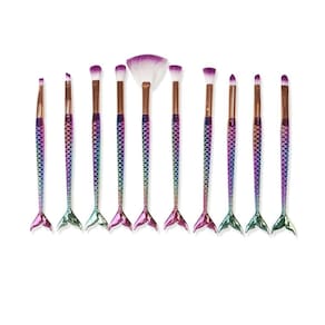 Pensando na praticidade e qualidade de suas maquiagens kit 10 Pinceis Sereia. Uma nova tendencia muito utilizada por blogueiras, fashionistas e profissionais da area da beleza.