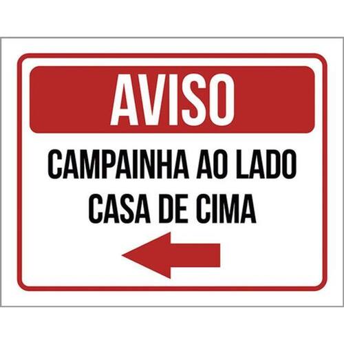 Kit 10 Placa Campainha Lado Casa Cima Seta Esquerda 36x46 Placas de sinalizaço fabricadas com poliestireno de alto impacto PSAI de 2mm e impressão ultravioleta.