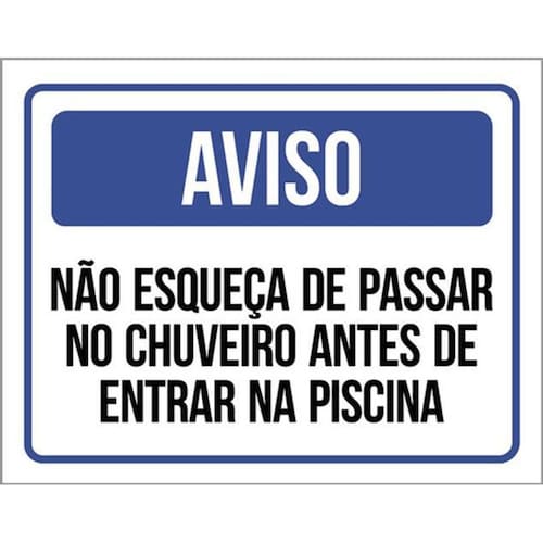 Kit 10 Placa Esqueça Chuveiro Antes Entrar Piscina 36x46 Placas de sinalizaço fabricadas com poliestireno de alto impacto PSAI de 2mm e impressão ultravioleta.