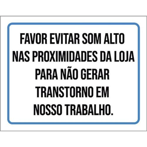 Kit 10 Placa Favor Evitar Som Alto Nproximidades Loja36x46 Placas de sinalizaço fabricadas com poliestireno de alto impacto PSAI de 2mm e impressão ultravioleta.