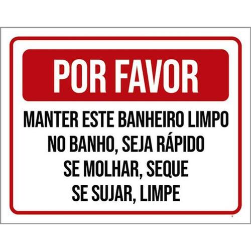 Kit 10 Placa Favor Manter Banheiro Limpo Banho Rápido 36x46 Placas de sinalizaço fabricadas com poliestireno de alto impacto PSAI de 2mm e impressão ultravioleta.