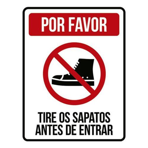 Kit 10 Placa Favor Tire Sapatos Antes Entrar Ícone 36x46 Placas de sinalizaço fabricadas com poliestireno de alto impacto PSAI de 2mm e impressão ultravioleta.