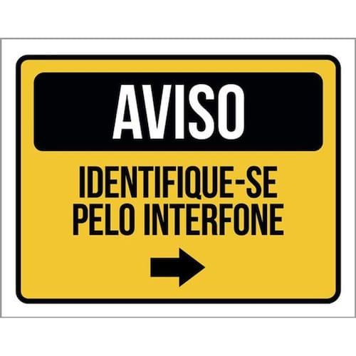 Kit 10 Placa Identifique-se Interfone Seta Direita 36x46 Placas de sinalizaço fabricadas com poliestireno de alto impacto PSAI de 2mm e impressão ultravioleta.