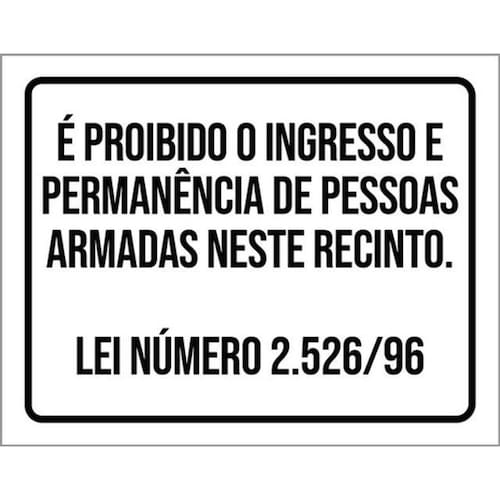 Kit 10 Placa Ingresso Permanência Pessoas Armadas 36x46