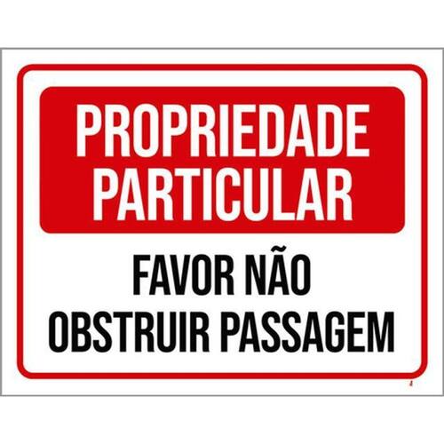 Kit 10 Placa Proprieda Particular Obstruir Passag 36x46 Placas de sinalizaço fabricadas com poliestireno de alto impacto PSAI de 2mm e impressão ultravioleta.