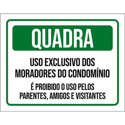 Kit 10 Placa Quadra Exclusivo Moradores Do Condomínio36x46 Placas de sinalizaço fabricadas com poliestireno de alto impacto PSAI de 2mm e impressão ultravioleta.