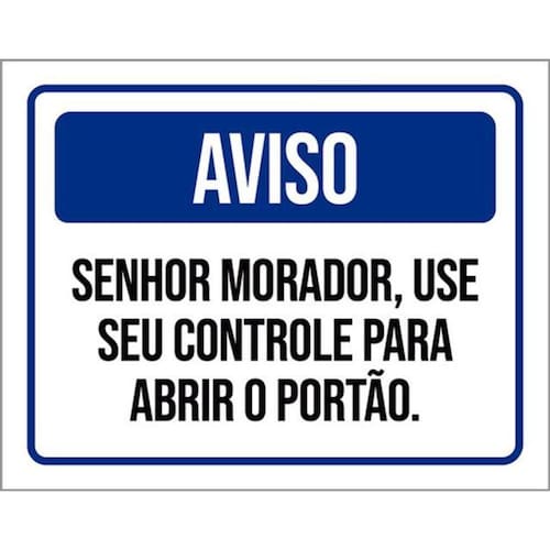 Kit 10 Placa Senhor Morador Controle Abrir Portão 36x46 Placas de sinalizaço fabricadas com poliestireno de alto impacto PSAI de 2mm e impressão ultravioleta.