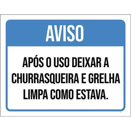 Kit 10 Placas Após Uso Churrasqueira Grelha Limpa Placas de sinalizaço fabricadas com poliestireno de alto impacto PSAI de 2mm e impressão ultravioleta.