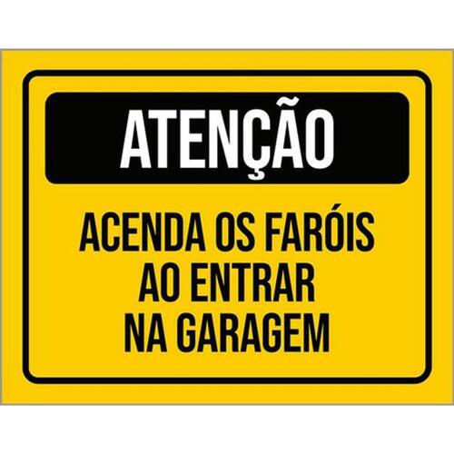 Kit 10 Placas Atenção Acenda Faróis Entrar Na Garagem 36x46 Placas de sinalizaço fabricadas com poliestireno de alto impacto PSAI de 2mm e impressão ultravioleta.