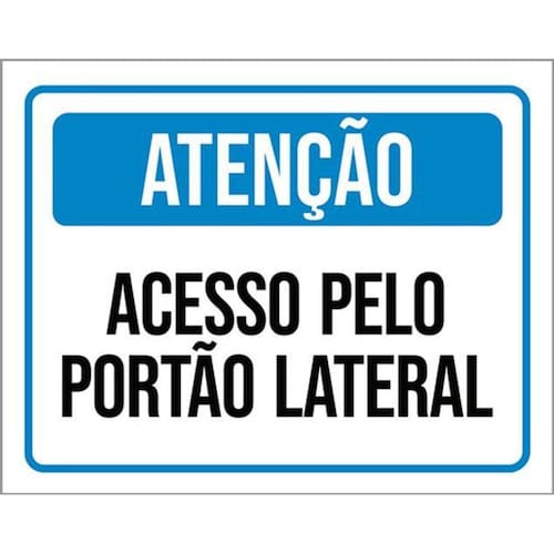 Kit 10 Placas Atenção Acesso Pelo Portão Lateral Placas de sinalizaço fabricadas com poliestireno de alto impacto PSAI de 2mm e impressão ultravioleta.