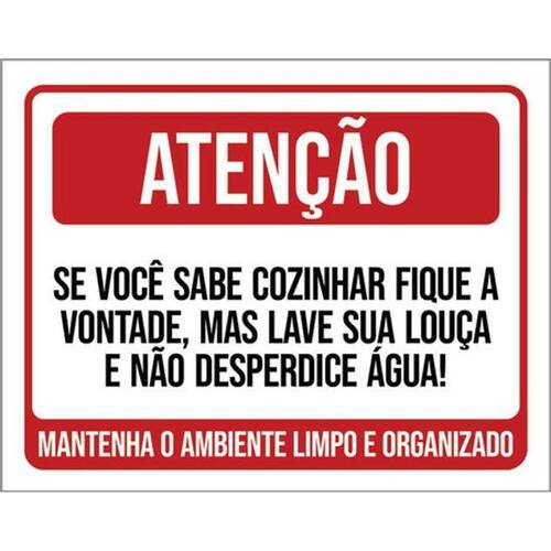 Kit 10 Placas Atenção Sabe Cozinhar Lave Louça Desperdice Placas de sinalizaço fabricadas com poliestireno de alto impacto PSAI de 2mm e impressão ultravioleta.