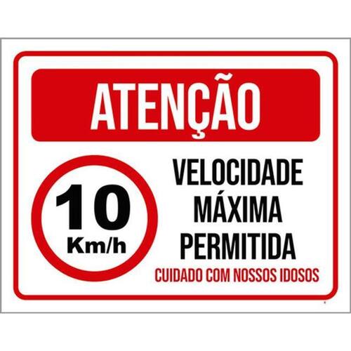 Kit 10 Placas Atenção Velocidade Máxima Idosos 36x46 Placas de sinalizaço fabricadas com poliestireno de alto impacto PSAI de 2mm e impressão ultravioleta.