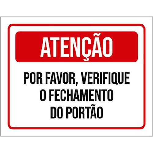 Kit 10 Placas Atenção Verifique Fechamento Do Portão 36x46 Placas de sinalizaço fabricadas com poliestireno de alto impacto PSAI de 2mm e impressão ultravioleta.