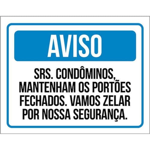 Kit 10 Placas Aviso Condôminos Portões Fechados Zelar 36x46