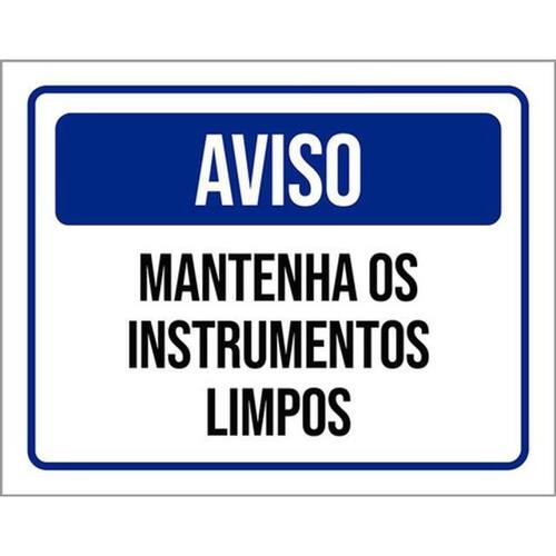 Kit 10 Placas Aviso Mantenha Instrumentos Limpos 36x46 Placas de sinalizaço fabricadas com poliestireno de alto impacto PSAI de 2mm e impressão ultravioleta.