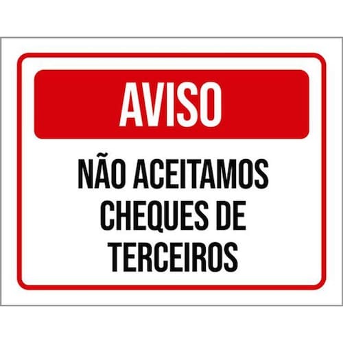 Kit 10 Placas Aviso Não Aceitamos Cheques De Terceiros 36x46 Placas de sinalizaço fabricadas com poliestireno de alto impacto PSAI de 2mm e impressão ultravioleta.