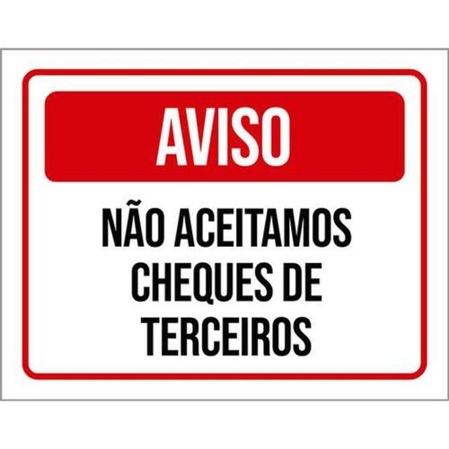 Kit 10 Placas Aviso Não Aceitamos Cheques De Terceiros 36x46 Placas de sinalizaço fabricadas com poliestireno de alto impacto PSAI de 2mm e impressão ultravioleta.
