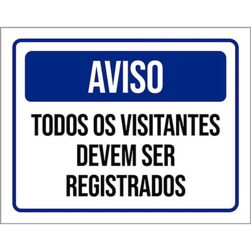 Kit 10 Placas Aviso Todos Visitantes Registrados 36x46 Placas de sinalizaço fabricadas com poliestireno de alto impacto PSAI de 2mm e impressão ultravioleta.