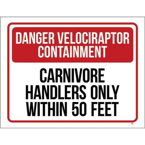 Kit 10 Placas Danger Velociraptor Containt Placas de sinalizaço fabricadas com poliestireno de alto impacto PSAI de 2mm e impressão ultravioleta.
