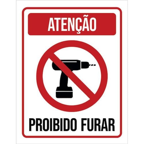 Kit 10 Placas De Atenção Proibido Furar 36x46 Placas de sinalizaço fabricadas com poliestireno de alto impacto PSAI de 2mm e impressão ultravioleta.