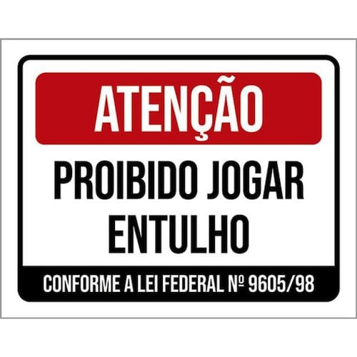 Kit 10 Placas De Atenção Proibido Jogar Entulho 36x46 Placas de sinalizaço fabricadas com poliestireno de alto impacto PSAI de 2mm e impressão ultravioleta.