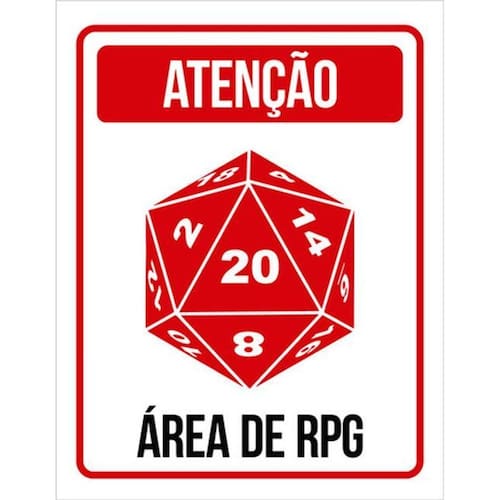 Kit 10 Placas Decorativa Dado D20 Atenção Área De Rpg 36x46 Placas de sinalizaço fabricadas com poliestireno de alto impacto PSAI de 2mm e impressão ultravioleta.