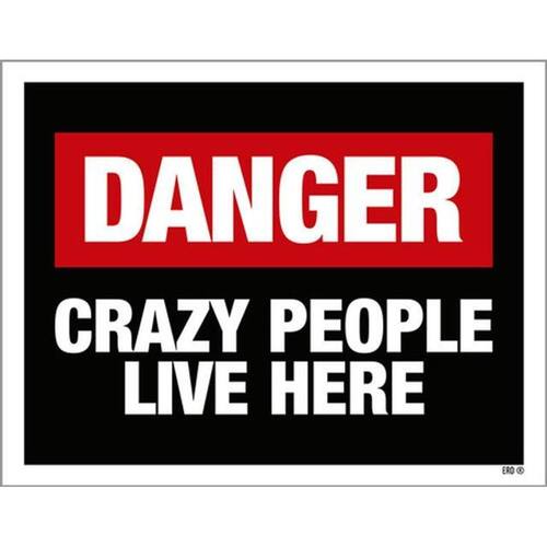 Kit 10 Placas Decorativa Danger Crazy People Live Here 36x46 Placas de sinalizaço fabricadas com poliestireno de alto impacto PSAI de 2mm e impressão ultravioleta.
