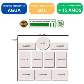 Quantidades: 1 peça 30 cm diâmetro, 2 peças 40x15 cm, 7 peças 20x30 cm..